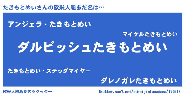 | ヘコむあだ名 | 『たきもとめい(笑)』『たきっふぃ~』 |