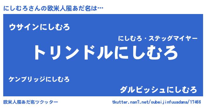 | ピコ太郎風あだ名 | 『ニシ三郎』『ピコニ郎』『ニニ太郎』 |