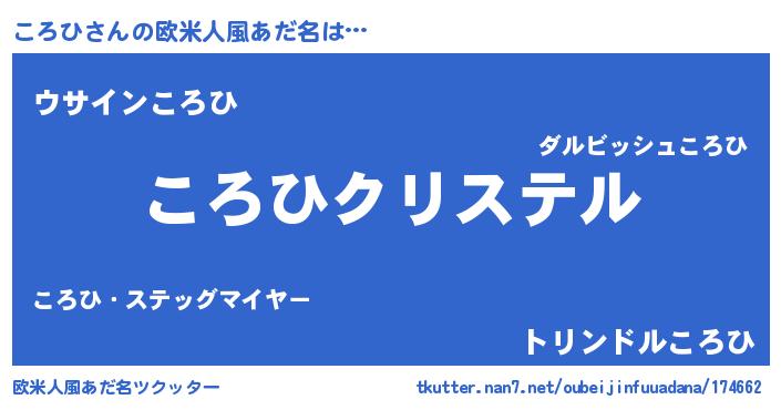 | ヘコむあだ名 | 『酢こんぶ』『ころを』『ころもー』 |