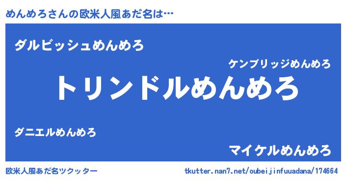 | 男性向けラノベタイトル風あだ名 | 『メンメロスレイヤー』『めんめろの憂鬱』 |