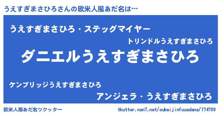 | 男性向けラノベタイトル風あだ名 | 『ノーゲーム・ノーウエスギマサヒロ』 |