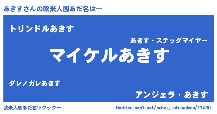 | 胡散臭い通販商品みたいなあだ名 | 『億万長者になれるブレスレット…その名も「あきす」』 |