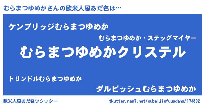 | 男性向けラノベタイトル風あだ名 | 『やはりむらまつゆめかの青春ラブコメはまちがっている 』 |