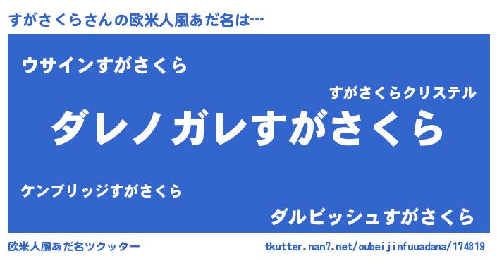 | 男性向けラノベタイトル風あだ名 | 『この素晴らしい世界にすがさくらを!』 |