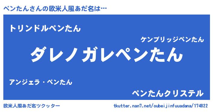 | 女子向けラノベタイトル風あだ名 | 『乙女ゲームの破滅フラグしかない悪役ペンたんに転生してしまった…』 |