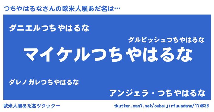 | 男性向けラノベタイトル風あだ名 | 『ツチヤハルナアートオンライン』 |