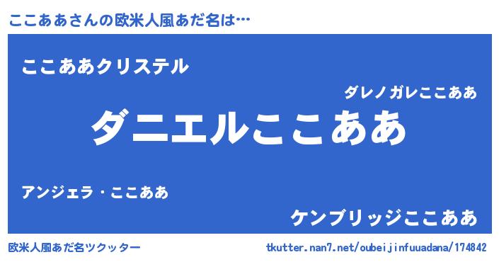 | 女子向けラノベタイトル風あだ名 | 『ここああ夫妻のなれそめ』 |