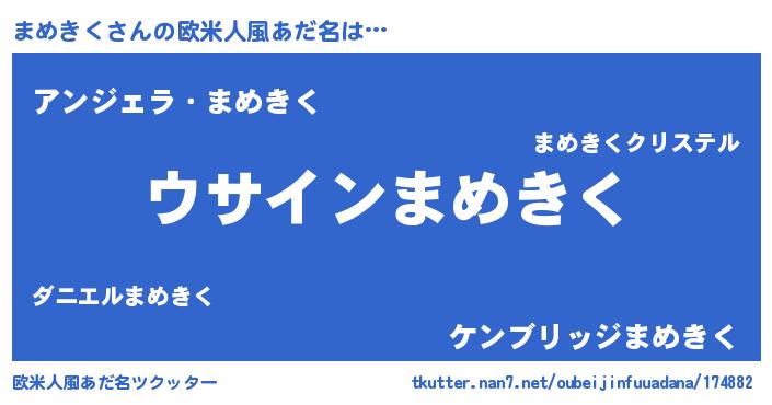 | 男性向けラノベタイトル風あだ名 | 『まめきくの嫁は女の子じゃないと思った?』 |