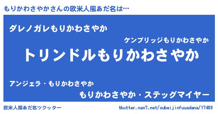 | 男性向けラノベタイトル風あだ名 | 『もりかわさやか~年齢イコール彼女いない歴の魔法使い~』 |