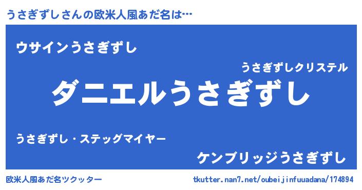 | ヒーロー風カッコイイあだ名 | 『天空の使者うさぎずし』『黄金騎士ウサ』 |