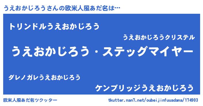 | 男性向けラノベタイトル風あだ名 | 『冴えないうえおかじろうの育てかた』 |