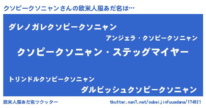 | ヘコむあだ名 | 『クソピークソニャン(爆)』『クソにー』 |