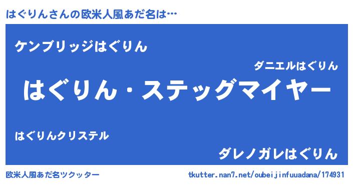 | 意味不明あだ名 | 『自称はぐりん』『はぐりんフォーエバー』 |