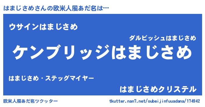 | 意味不明あだ名 | 『自称はまじさめ』『永久保存はまじさめ』 |