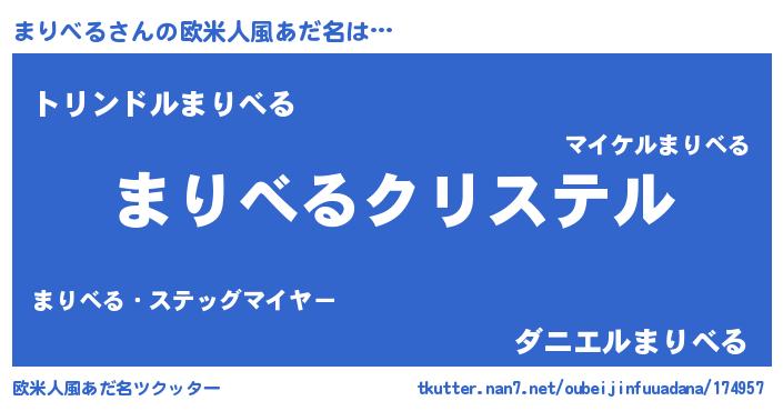 | ヒーロー風カッコイイあだ名 | 『ウルトラまりべるマン』『仮面マリダー』 |