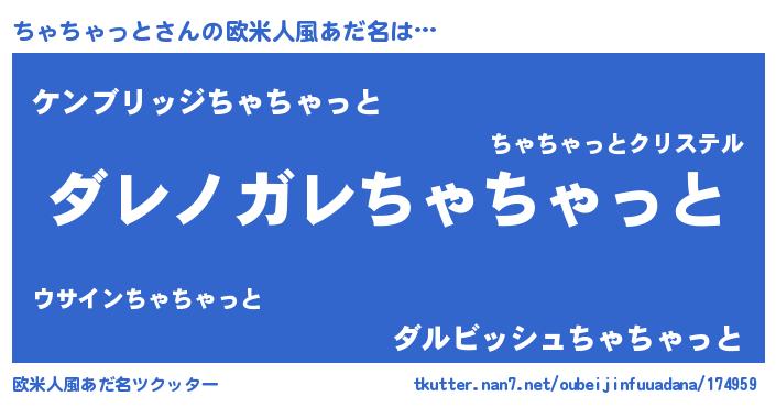 | 料理風あだ名 | 『ちゃちゃっとのカルパッチョ風』 |