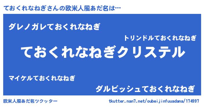 | 意味不明あだ名 | 『ておくれなねぎフォーエバー』 |