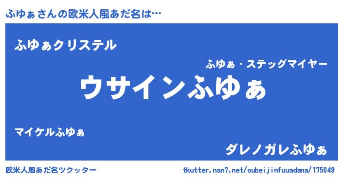 | 男性向けラノベタイトル風あだ名 | 『ふゆぁの嫁は女の子じゃないと思った?』 |