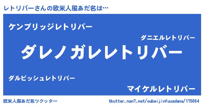 | 意味不明あだ名 | 『住所不定無職レトリバー(71歳)』 |