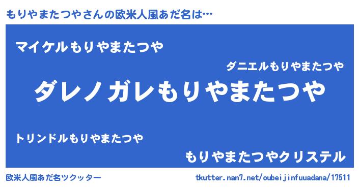 | 男性向けラノベタイトル風あだ名 | 『この素晴らしい世界にもりやまたつやを!』 |
