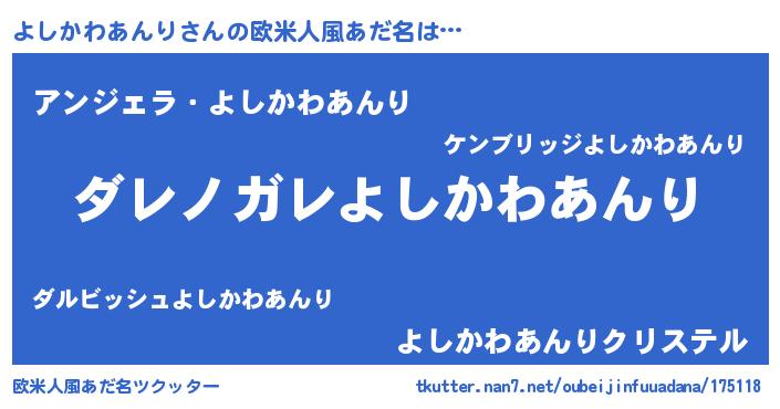 | 意味不明あだ名 | 『住所不定無職よしかわあんり(47歳)』 |