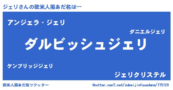 | 男性向けラノベタイトル風あだ名 | 『ジェリという概念が存在しない退屈な世界 』 |