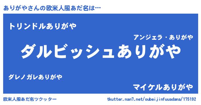 | ヘコむあだ名 | 『ありがや(小並感)』『ありふぇ~』 |