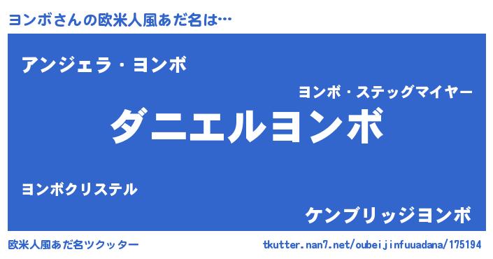 | 女子向けラノベタイトル風あだ名 | 『死神ヨンボの再婚』『ヨンボ伯爵の花嫁』 |