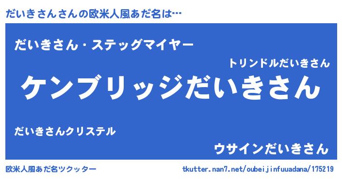 | 女子向けラノベタイトル風あだ名 | 『だいきさんストレイドッグス』 |