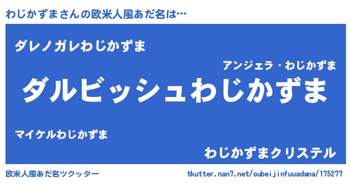 | 男性向けラノベタイトル風あだ名 | 『わじかずまという概念が存在しない退屈な世界 』 |