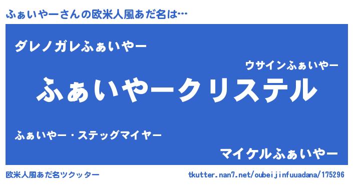 | 女子向けラノベタイトル風あだ名 | 『ふぁいやー伯爵の花嫁』 |