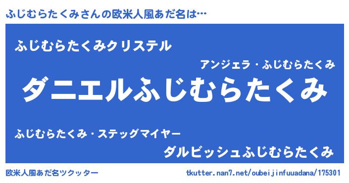 | 男性向けラノベタイトル風あだ名 | 『ノーゲーム・ノーフジムラタクミ』 |