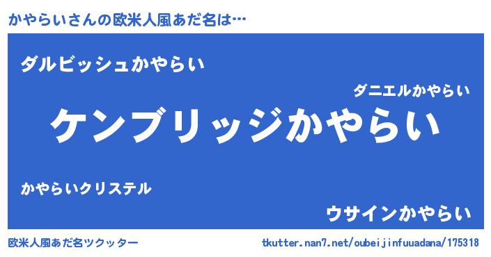 | 女子向けラノベタイトル風あだ名 | 『かやらいアンティーク』 |