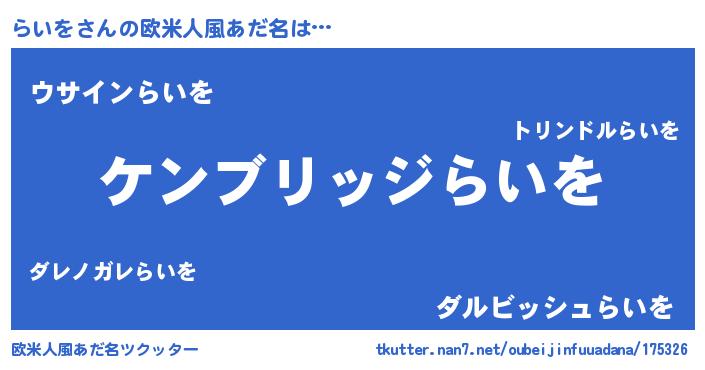 | 意味不明あだ名 | 『自称らいを』『とにかく怪しいらいを』 |