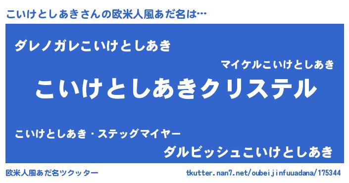 | 女子向けラノベタイトル風あだ名 | 『こいけとしあきの雑貨屋さん』 |