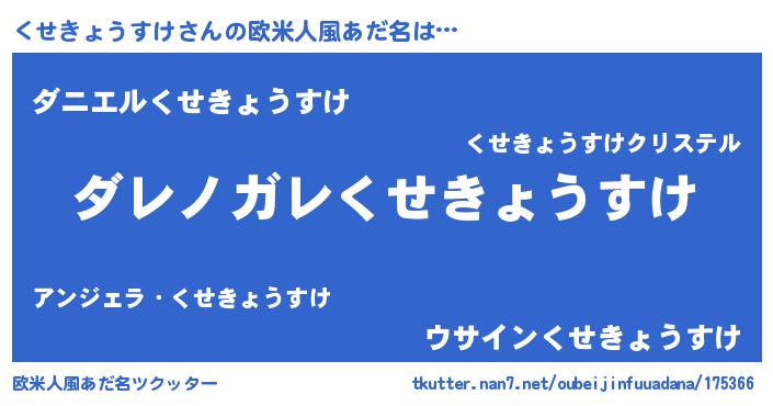 | 男性向けラノベタイトル風あだ名 | 『この素晴らしい世界にくせきょうすけを!』 |