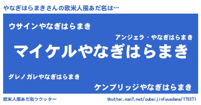 | 男性向けラノベタイトル風あだ名 | 『ヤナギハラマキアートオンライン』 |