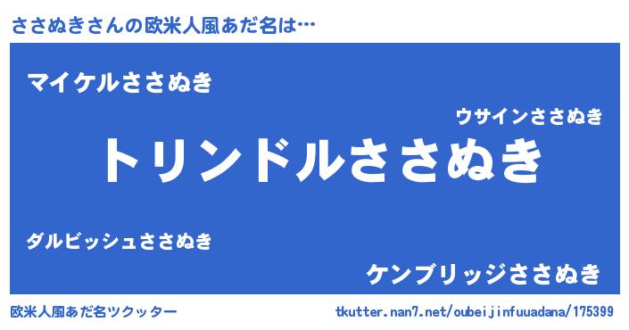 | 男性向けラノベタイトル風あだ名 | 『転生したらささぬきだった件』 |