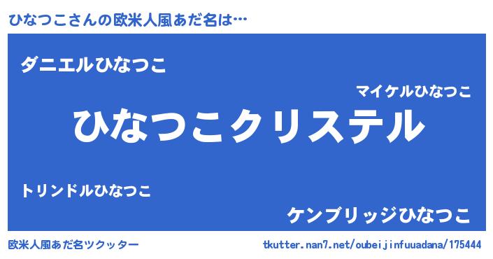 | 女子向けラノベタイトル風あだ名 | 『ひなつこの雑貨屋さん』 |