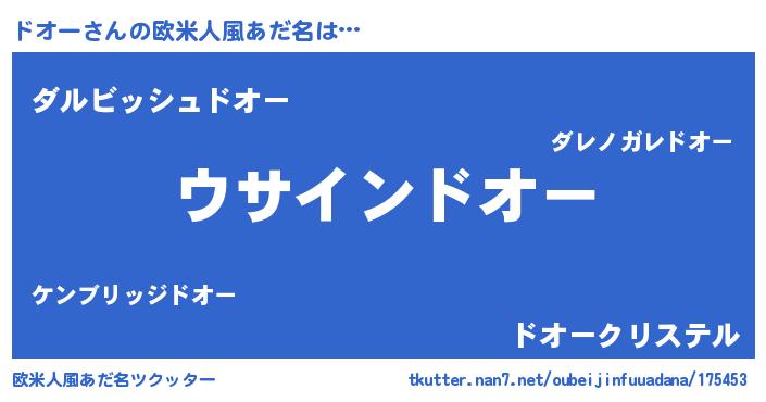 | 男性向けラノベタイトル風あだ名 | 『ドオーの嫁は女の子じゃないと思った?』 |