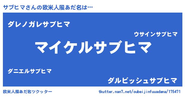 | ヒーロー風カッコイイあだ名 | 『スーパーサブヒマ』『仮面サブダー』 |