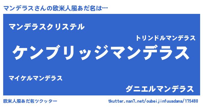 | ファンタジー風あだ名 | 『ゼマントゥ』『エターナルマンデラスー』 |
