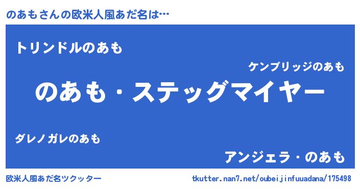 | 男性向けラノベタイトル風あだ名 | 『うちののあもが世界を掌握している!』 |
