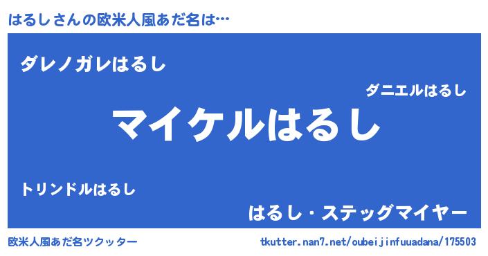 | 胡散臭い通販商品みたいなあだ名 | 『億万長者になれるブレスレット…その名も「はるし」』 |