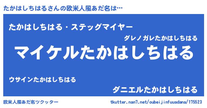 | 男性向けラノベタイトル風あだ名 | 『タカハシチハルアートオンライン』 |