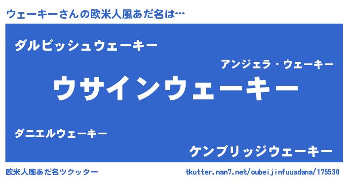 | 男性向けラノベタイトル風あだ名 | 『ウェーキーの嫁は女の子じゃないと思った?』 |