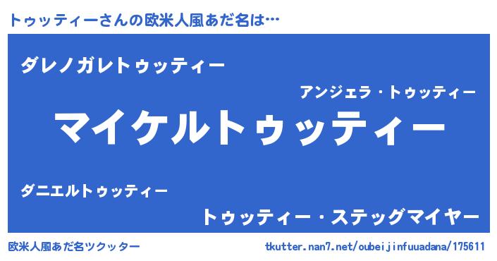 | 男性向けラノベタイトル風あだ名 | 『トゥッティーの憂鬱』 |