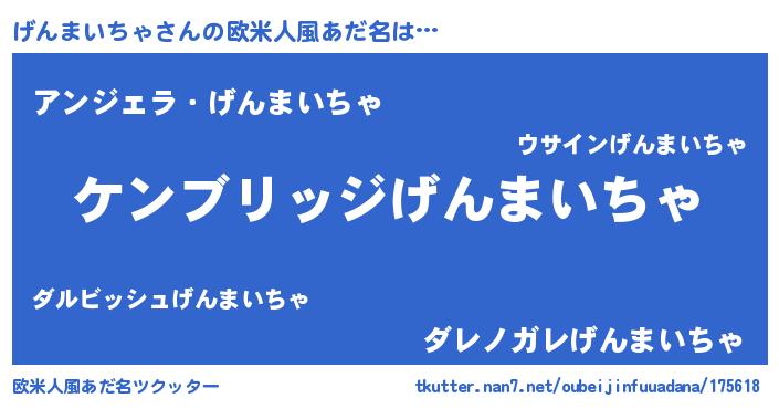 | 意味不明あだ名 | 『自称げんまいちゃ』 |