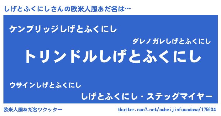 | ヘコむあだ名 | 『しげっぺ』『しげとふくにし(小並感)』 |