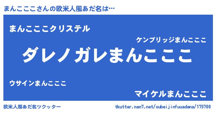 | 女子向けラノベタイトル風あだ名 | 『まんこここが死なない童話 林檎のまんこここの診療簿』 |